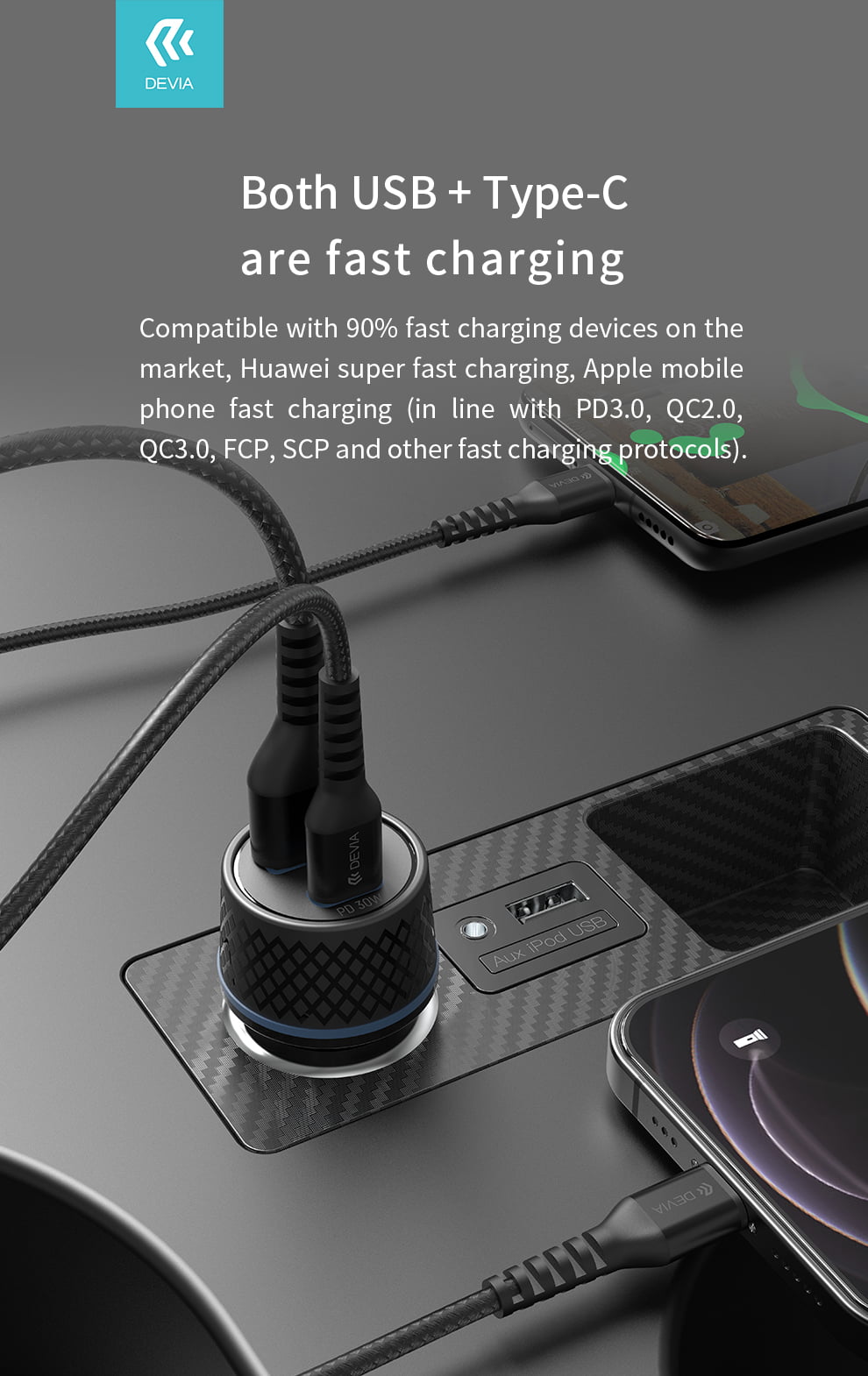 - • Fast Performance: Optimised for quick, stable 30w pd+qc fast car charger.
