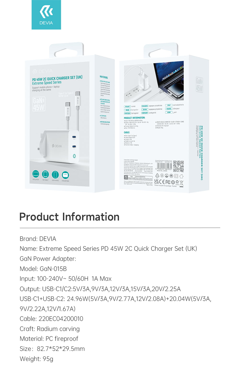 - • Fast Performance: Optimised for quick, stable 45w usb‑c fast charger.