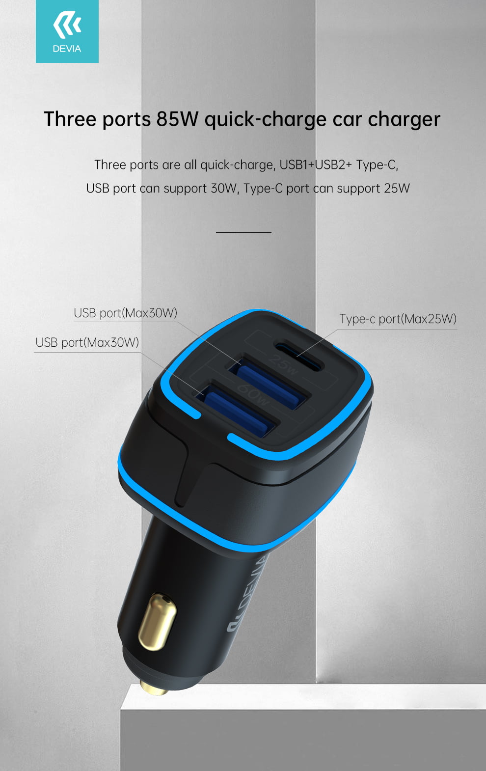 The 85W Dual USB + Type‑C Fast Car Charger is crafted for users who demand reliability and performance every single day, whether at home, in the office, or on the move.