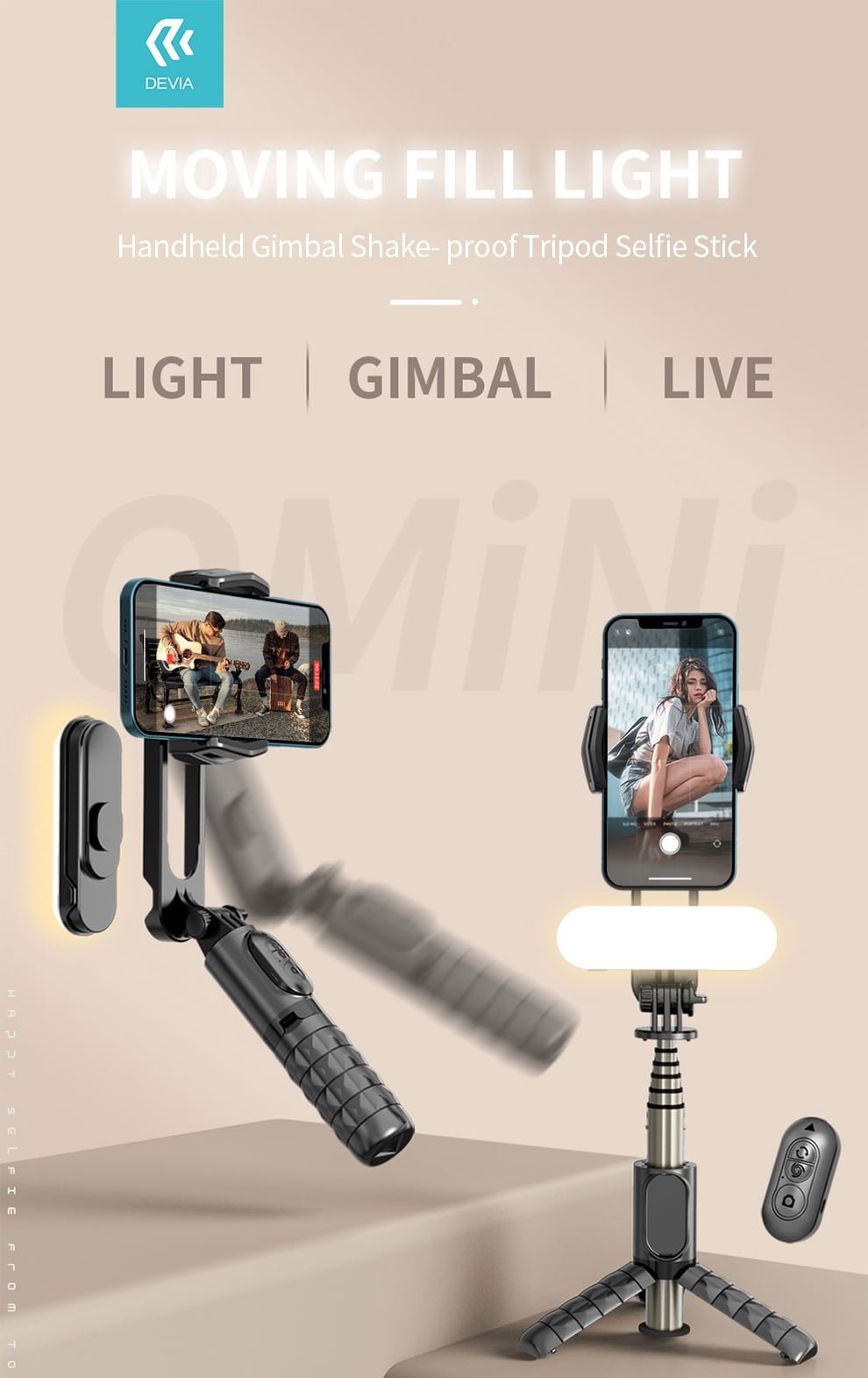 Seamlessly transition between handheld gimbal and tripod modes to cater to various shooting scenarios. The handheld mode is perfect for dynamic, on-the-go shots, while the tripod mode provides a stable foundation for static shots, time-lapses, or group photos.