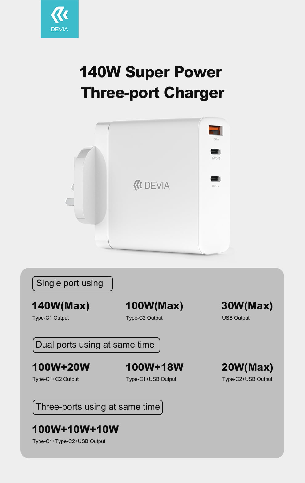 - • Fast Performance: Optimised for quick, stable 140w usb‑c+a gan fast charger.