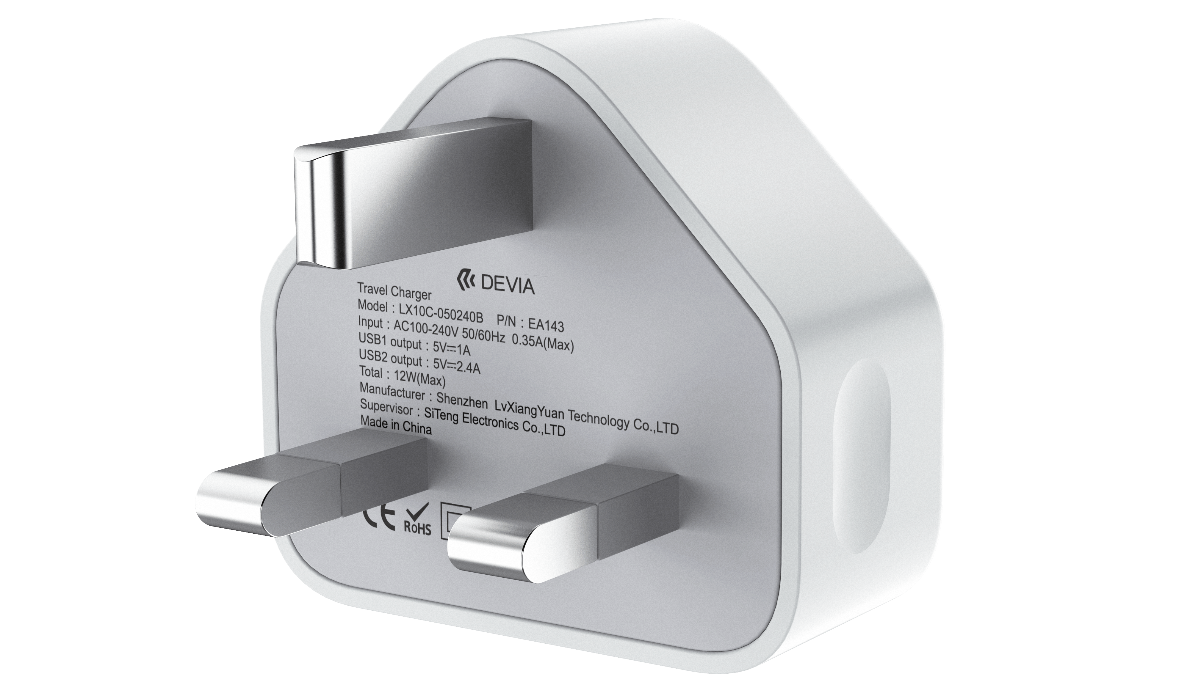 Output: total output DC5.0V 2.4A Max, USB1: DC5.0V 2.4A Max, USB2: DC5.0V 2.4A Max, intelligent identification IC.